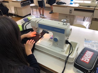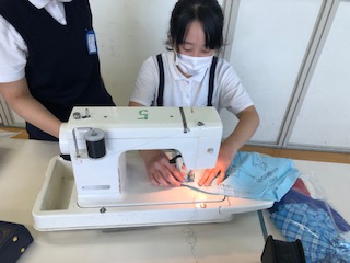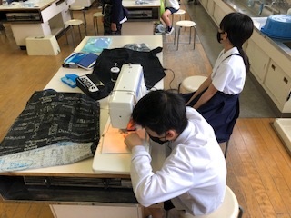 家庭科の学習でエプロンを作っています。