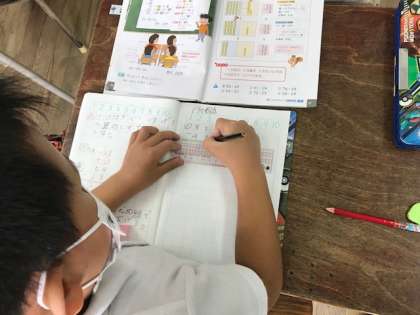 2位数−2位数の「くり下がり」のある筆算の学習をしました。