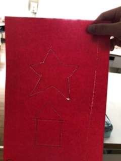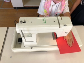 今日は年間計画を立てた後、ミシンの空縫いを赤い用紙にして、いろいろな形を作りました。