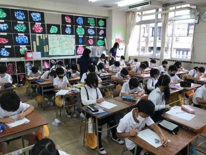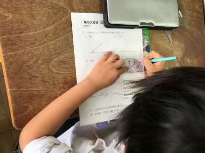 4年生は「角の大きさ」、2年生は「長さ」、1年生は「計算カード(たし算)」の問題をしました。