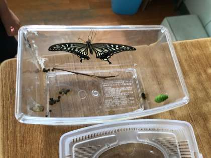 登校したら、アゲハチョウが羽化していて盛り上がりました。