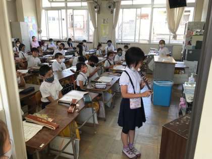 次の子が廊下で待ち、順番に先生の前に移動します。