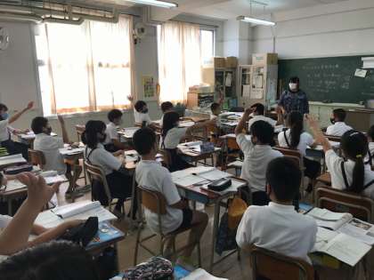 「わたしたちの食生活と米」の学習をしています。この時間は、米の産地と、気候・地形などとの関連性について調べました。米がさかんに作られているのは、比較的「寒い」地方であることを資料から読み取り、土地の様子がどうなっているからなのかについて考えていきました。