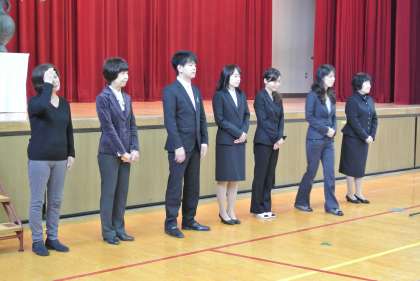新しい校長先生をはじめ、新着任の教職員の紹介と着任の挨拶がありました。