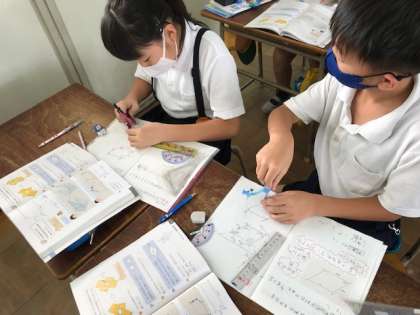 今日は、「平行四辺形の作図のしかた」を考えました。