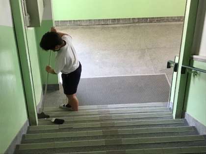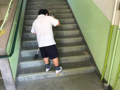 階段には、教室に戻る際に落ちた砂がたまっていましたが、