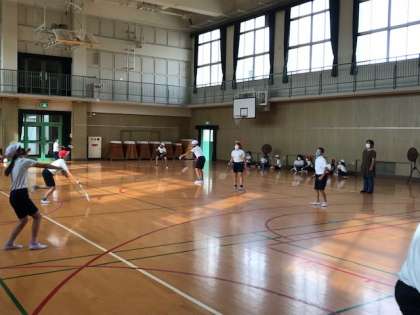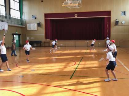 5・6年生の体育は、密集を避けるため、バドミントンを