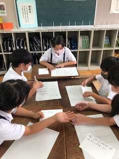 国語の話し合い活動「グループで合い言葉をきめよう」の時間。