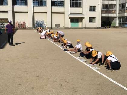 1時間目、太陽の動きに伴って、影が移動していく様子を観察しました。