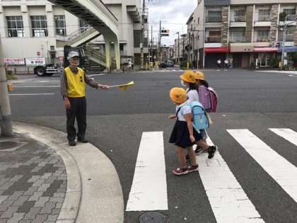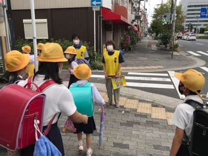 1週間の疲れがちょっと出る頃ですが、子どもたちは、見守り隊の方に見守られながら。元気よく登校しました。