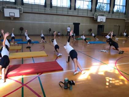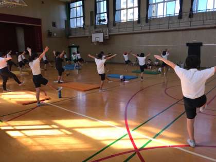 バランスをとりながら、完成形のフォームに気を付けて取り組んでいます。
