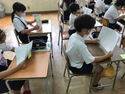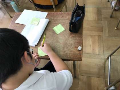 この時間は、完成した「作品」を読み合い、付せんに感想を書いて、交流しました。
