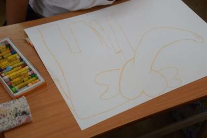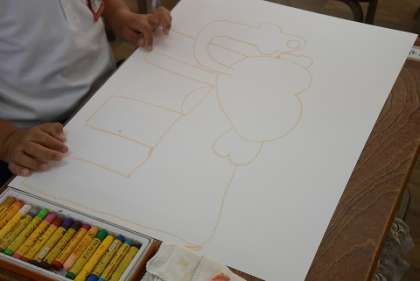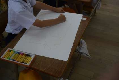子ども達がいろいろと思いを巡らせ自分の思い描いたゾウを大きく力いっぱい描いています。