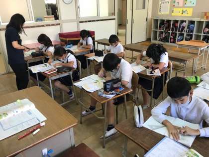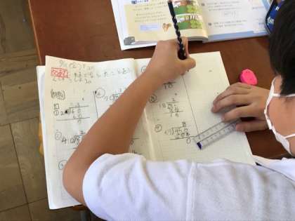 子どもたちは、割り切れたり、あまりが出たり、答えが1けただったり、2けただったりと、いろいろな問題に取り組みました。