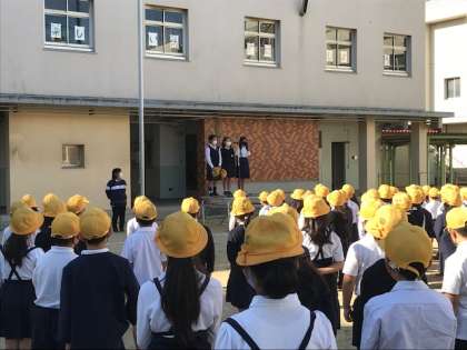 今朝は、ずいぶん冷え込みましたが、さわやかな青空の下、児童朝会がありました。