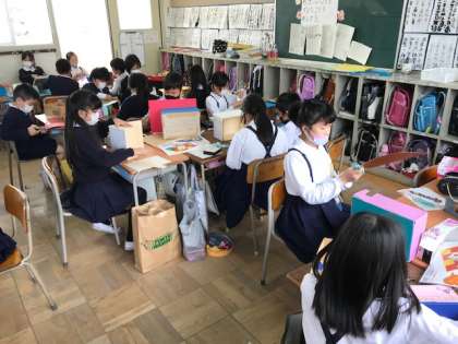 机を中心に向け、グループごとにとても楽しく活動していました。