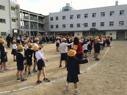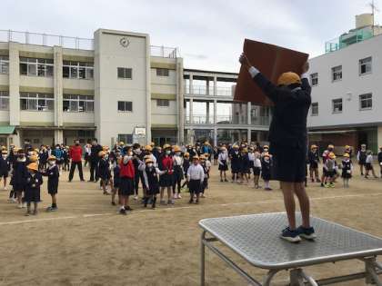 朝礼台に立つ集会委員会の子が出すじゃんけんに「勝った子」以外はその場に座っていきます。最後まで残った子に拍手を送りました。
