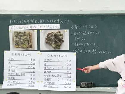 給食に出るようなお好み焼きに対して、もう一方は、べちゃべちゃしていました。