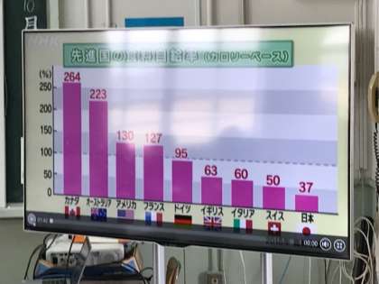 日本の「食料自給率」が先進国の中では極めて低いというデータから、このままだと、お好み焼きにも影響がでるかもしれないというお話でした。