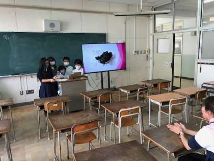 できたグループから、となりの教室でリハーサルをし、画像や文字の見え方などを確認しました。