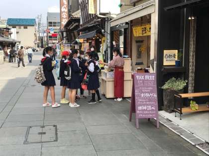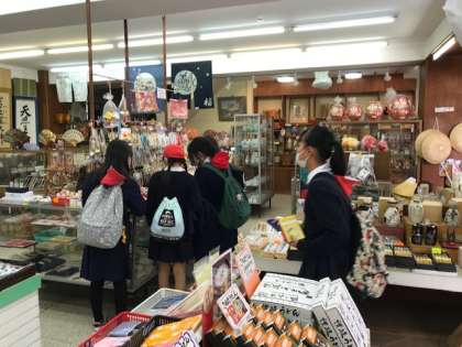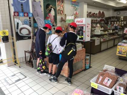 うどん作り体験までの時間にお土産を買いました。次々に買っていく子がいれば、じっくり店を回って選ぶ子もいます。