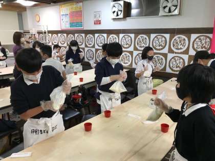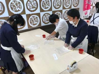 コロナ禍の前は、足で踏んでこねていましたが、今回は手作業でした。