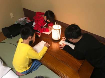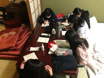 入浴、夕食のあとに、自分の部屋で、今日一日のふりかえりを書きました。