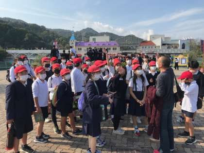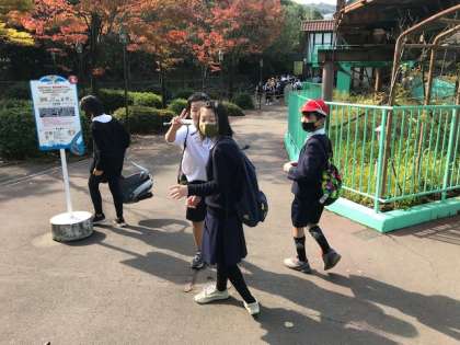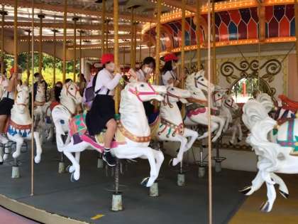 フリーパスと昼食のミールクーポンを手に、園内を楽しく移動しています。