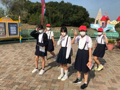 レオマワールドでの楽しい活動が続いています。みんな、ニコニコ笑顔です。