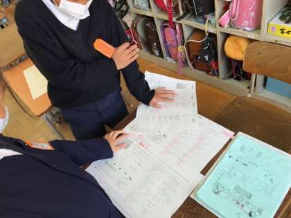 のように、「計算のきまり」に気をつけて答えを導く問題をし、できたら自己採点して間違い直しをしました。