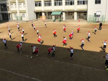運動場から、力強い太鼓の響きが伝わってきました。