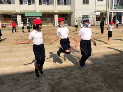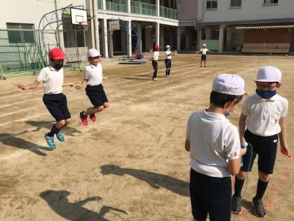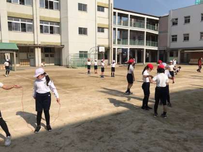 穏やかな秋晴れに恵まれ、運動場で「なわとび」をしました。