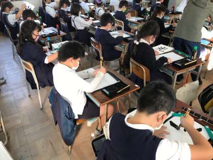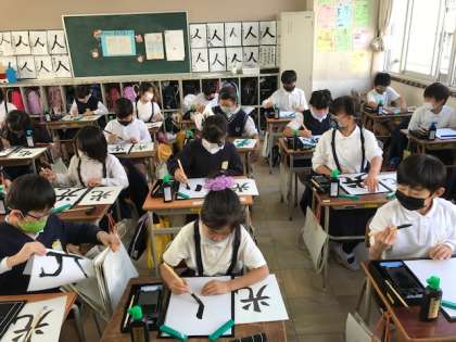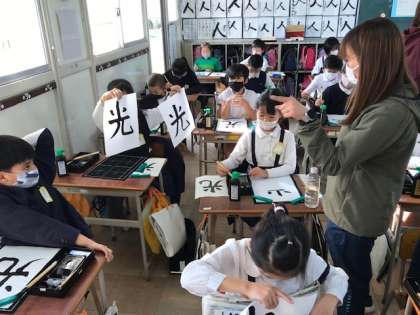 書いているうちに、筆が倒れてしまわないように、筆を立てることを意識しながら、一画ずつていねいに書いていきました。