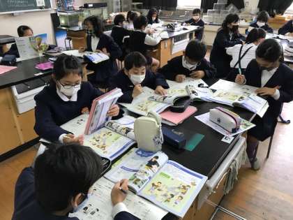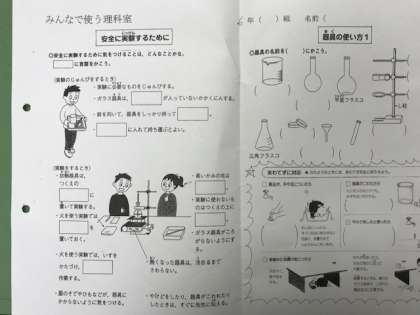 そこで、この時間は、安全に実験ができるよう、プリントを使って事前学習をしました。