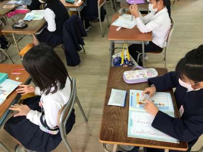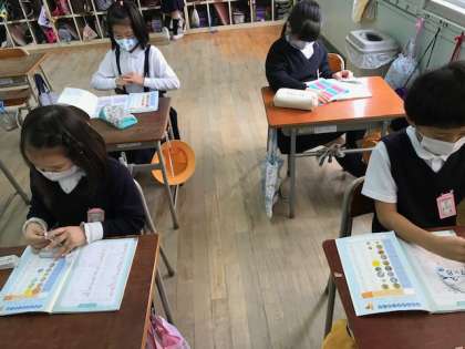 自分の席で練習し、順番が来たら、先生のところでテストを受けます。