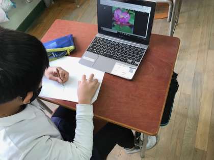 この時間は、パソコンで検索し、お気に入りの花を決めていました。