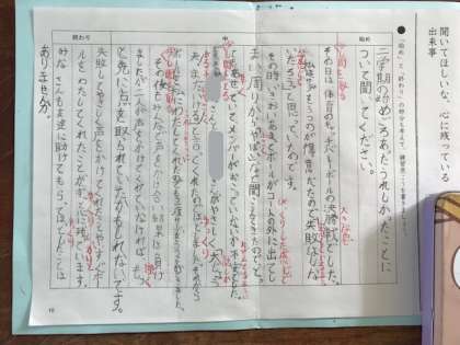 「始め」「中」「終わり」の構成を考えながら、心に残る出来事が伝わるよう、下書きを校正しました。