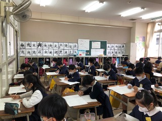 今日は、3年生以上の児童は、「大阪市学力経年調査」の一日目で、国語と社会の問題に取り組みました。