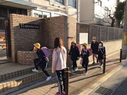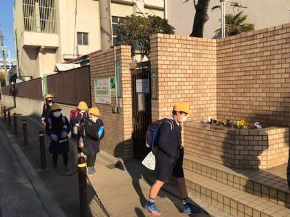 4年生が学級休業のため、ちょっと寂しい朝でしたが、春を感じる太陽のもと、元気に登校する姿が見られました。