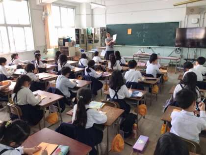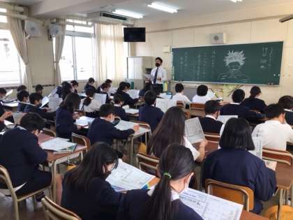 新しい教室に入り、担任の先生の話をよく聞いていました。