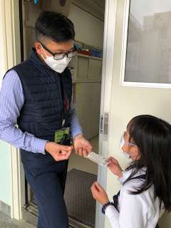 今日から昼の放送も始まりました。 放送委員会の児童とRayJay先生が放送しました。