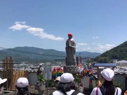 真光寺に到着しました。ご住職はじめ皆さまの温かなおもてなしを受けながら、十六地蔵をみんなでお参りしました。改めて、命と平和の大切さ、人と人のつながりの有り難さを感じる機会になりました。