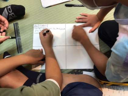 全員でミーティングを行い、今日1日の取り組みを振り返ります。熱心な話し合いの様子から今日の充実感が伝わってきます。
