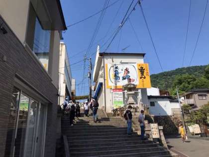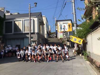 二日目の最初の活動はこんぴらさん785段の階段を登ります。日差しは強いですが、風が心地良いです。