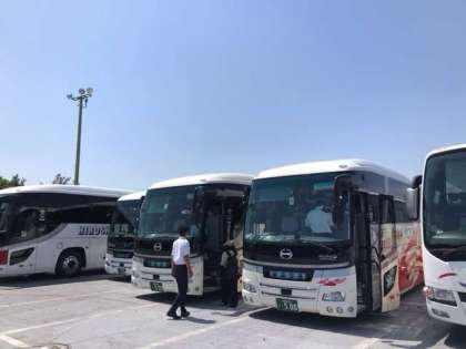 楽しかった修学旅行もいよいよ終盤です。レオマワールドを後にし、一路大阪に戻ります。