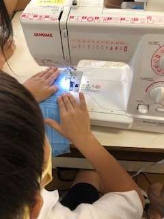 初めは、ミシンを使うのに怖がっていた子もいましたが、だんだんと慣れてきました。