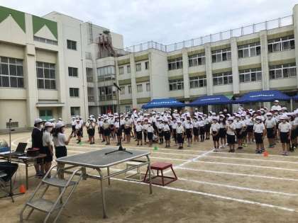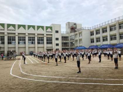 今年の運動会のテーマは、『みんなが笑顔で仲良く協力し楽しい運動会にしよう』です。笑顔あふれる素敵な運動会をみんなでつくりましょう。