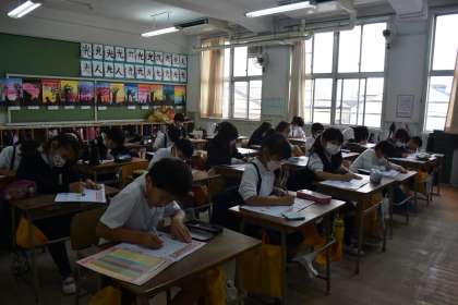 ローマ字の「ぱぴぷぺぽ(pa pi pu pe po)」の練習をしました。