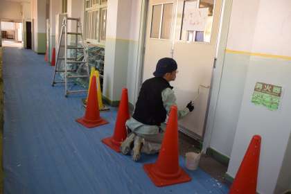 教室のドアや壁をきれいに塗り替えてくれています。