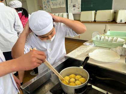 班で協力しておいしいサーターアンダギーを作ることができました!!